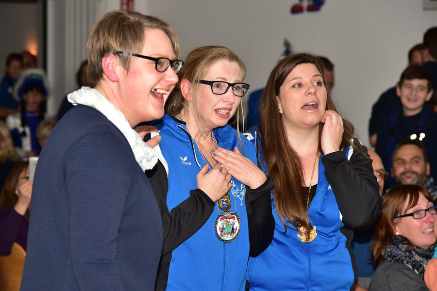 Einige Freudentränen sowie Gänsehaut-Momente und Schunkelrunden später (Schließlich musste aus den insgesamt fünf 'vorbereiteten' Abendkleidern ganz spontan und auf die Schnelle eine Prinzessinnen-Robe ausgewählt und angepasst werden...) standen die beiden neuen KGH-Prinzenpaare dann freudestrahlend auf den Brettern, die so Manchem die Welt bedeuten, und ließen sich gebührend feiern... - Also, sowas hatten wir noch nie, da kann man nur sagen "kikeriki"!